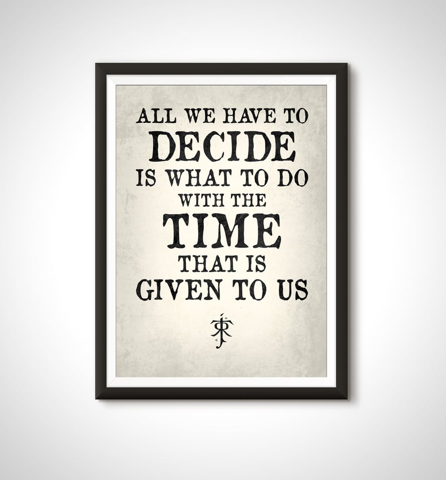 All We Have to Decide Wall Decal LOTR Sign Gandalf Quote Lord